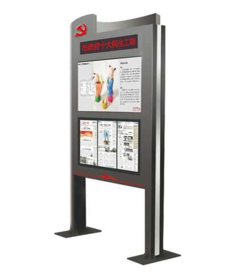 高端戶外電子閱報(bào)欄燈箱是平面媒體二次傳播的載體,為廣大群眾增加了學(xué)習(xí)黨的方針政策的機(jī)會(huì)和了解各類信息的渠道。是黨和政府重要的輿論宣傳陣地,有利于促進(jìn)當(dāng)?shù)亟?jīng)濟(jì)發(fā)展和精神文明建設(shè)。同時(shí)也是黨和政府?dāng)U大和占領(lǐng)新的輿論陣地的重要舉措。