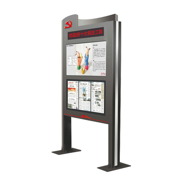 防曬防爆觸摸閱報戶外廣告機(jī),經(jīng)專用戶外粉烤漆、防水防曬、防腐蝕、防爆專業(yè)表面技術(shù)處理;可在戶外使用達(dá)8年不褪色;